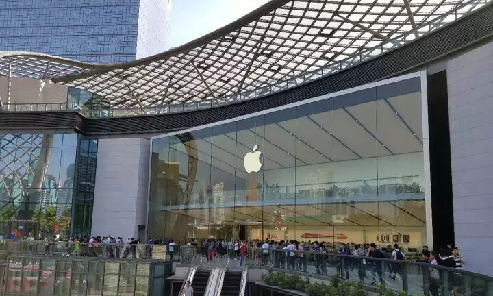 而下图是iPhoneX销售现场,也是排起了长队