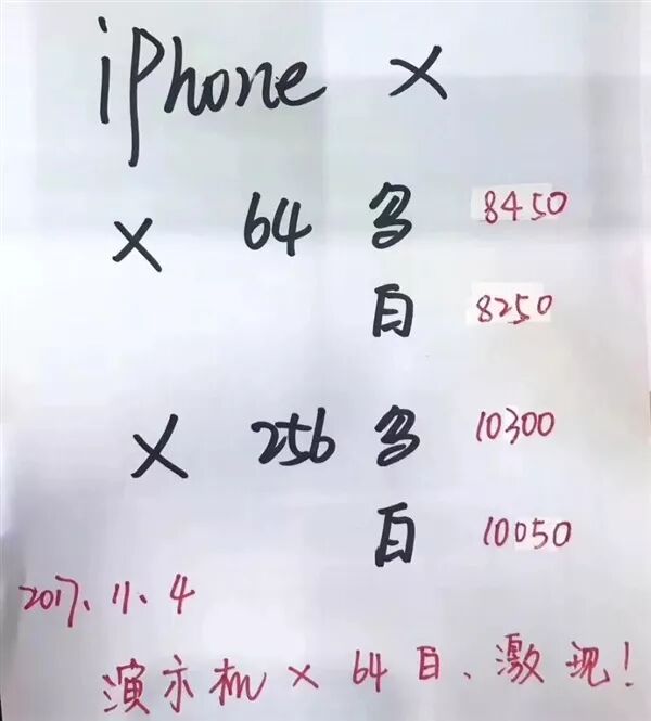 首先要哭的,就是我们又爱又恨的“黄牛”。北京某黄牛在收购iPhone X时仅愿意加价100元,不复当年。微博网友@C科技 爆料,浙江的一些商家甚至以低于iPhone X官方价格200元出售iPhone X,而在南京当地的第三方商家则在原价出售iPhone X。